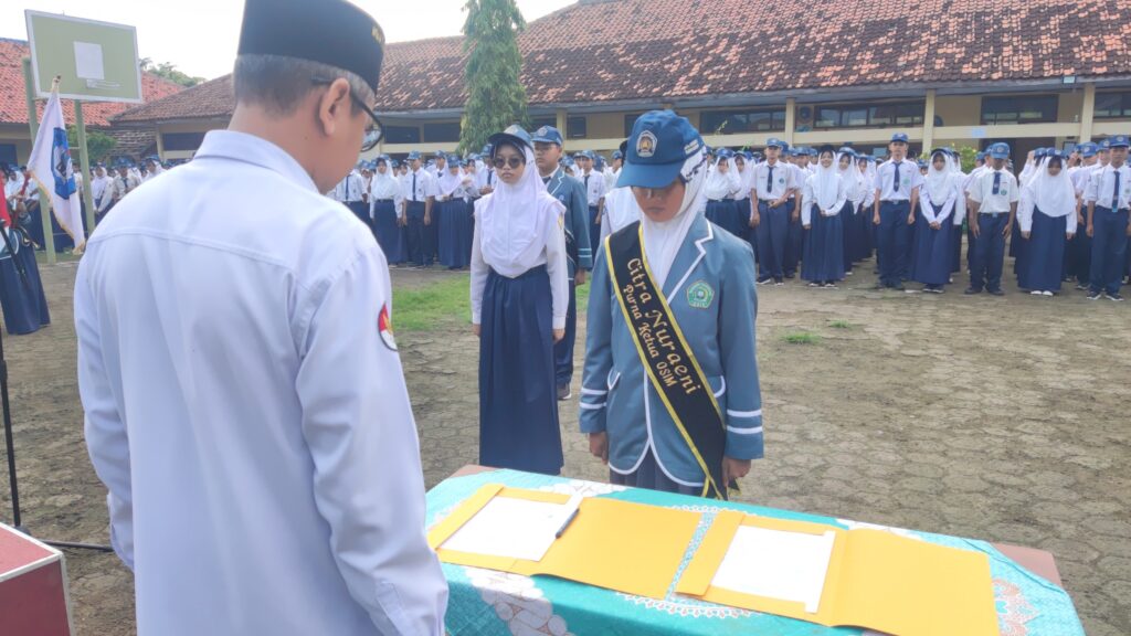 Amanah kepemimpinan tahun ini dipercayakan kepada Cinta Masah Kaila Malika sebagai Ketua OSIM didampingi Daiva Raiza Ariansah sebagai Wakil Ketua, serta Nabila Arshifa Septyriani sebagai Ketua MPK bersama Aria Ziyansyah sebagai Wakil Ketua. Dalam arahannya, Pembina Upacara H. Suparwoto menekankan pentingnya fungsionalitas setiap divisi organisasi. Beliau menginstruksikan Seksi Ketakwaan untuk mengambil peran sentral dalam manajemen masjid, mulai dari pengaturan adzan hingga memimpin kegiatan keagamaan seperti istighotsah dan tahlil, sementara Seksi Bela Negara diarahkan untuk menjadi motor penggerak nasionalisme dalam setiap pembiasaan termasuk menyanyikan lagu kebangsaan dan upacara bendera.