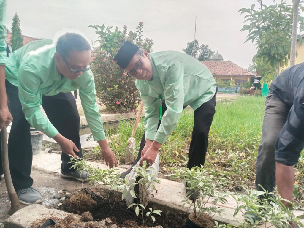 Cilamaya Wetan (HUMAS MTsN 1 Karawang) – Kegiatan Penghijauan dilaksanakan di MTsN 1 Karawang pada Kamis, 8 Januari 2026, sebagai bagian dari komitmen madrasah dalam menjaga kelestarian lingkungan dan mendukung program Adiwiyata. Kegiatan ini diikuti oleh seluruh warga madrasah, mulai dari murid, guru, hingga tenaga kependidikan, dengan melakukan penanaman berbagai jenis tanaman di lingkungan madrasah.